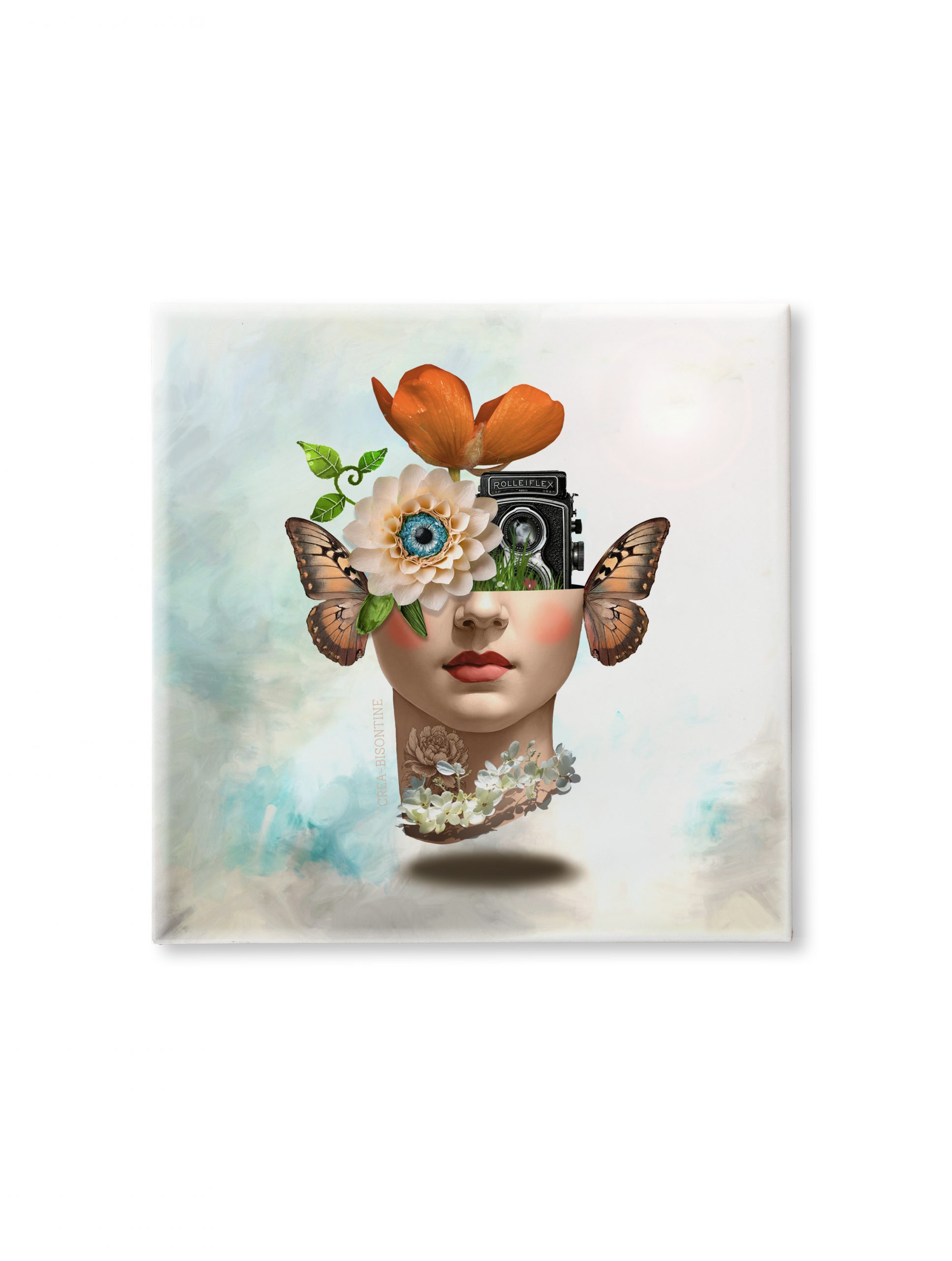 Plongez dans l’univers captivant des MurMuses avec le carreau de céramique Iris. Illustrant la Gardienne des Souvenirs , avec son appareil photo vintage, symbolise la préservation des moments qui façonnent notre existence. Elle est entourée de fleurs et de papillons, représentant la transformation et la beauté éphémère de la vie. Parfait pour ajouter une touche de nature et d’art à votre intérieur, ce carreau illustre la joie de vivre et la légèreté inspirées par le colibri.. Disponible en deux tailles pratiques, ce carreau peut être utilisé de multiples façons : il peut être accroché au mur ou posé sur une surface grâce à l’attache fournie. Livré dans une boîte soigneusement emballée, il est prêt à injecter de la joie et une énergie revitalisante dans votre espace de vie.