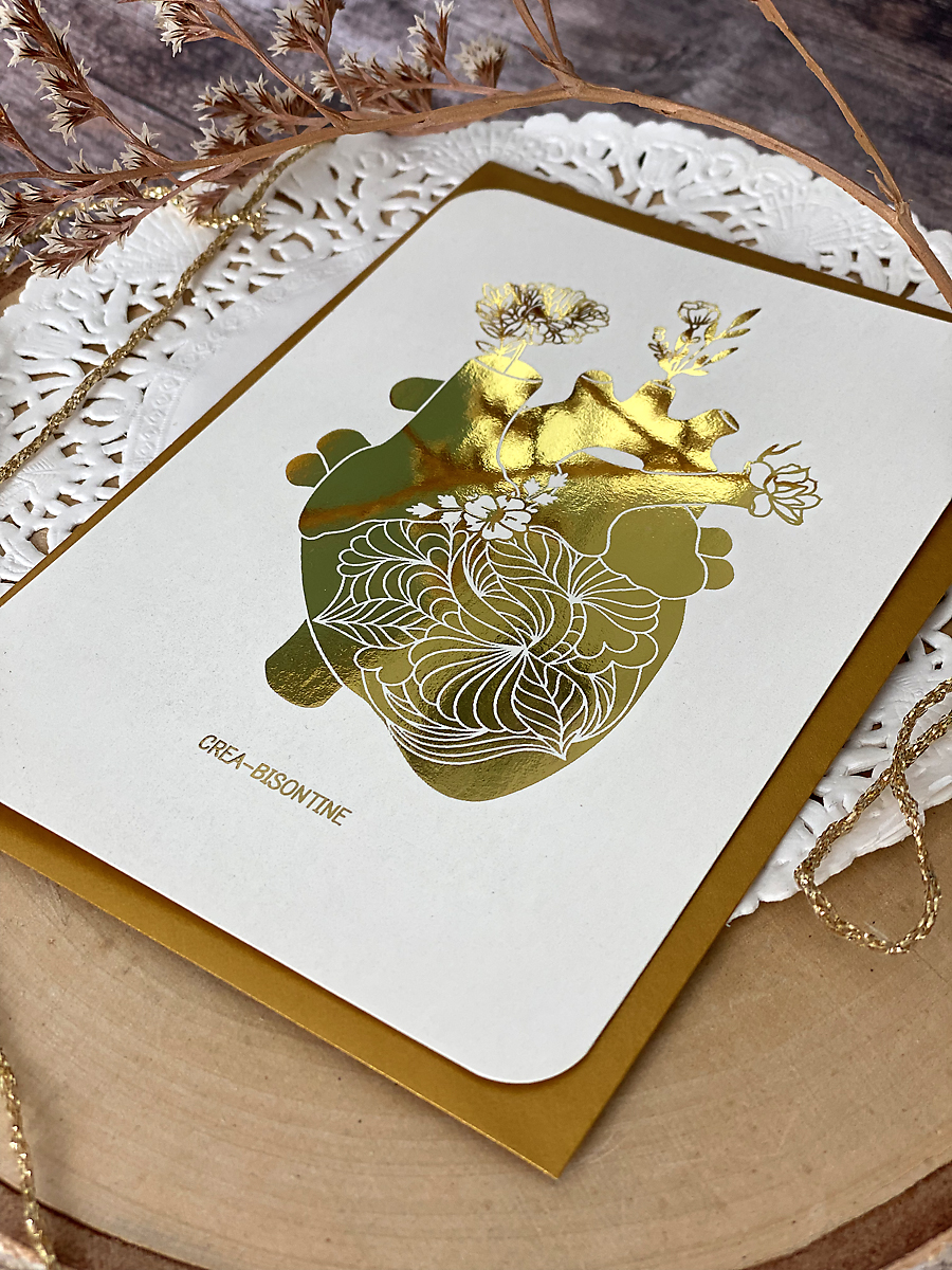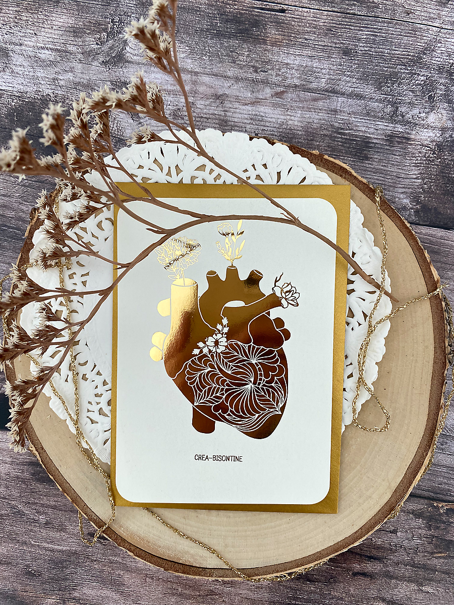 illustration d’un coeur fleuri et métallisé en doré